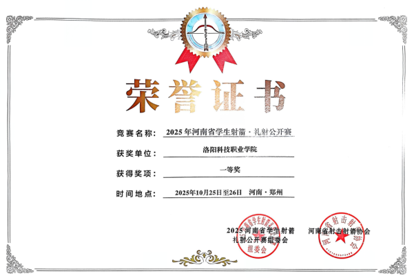 近日,2025年河南省学生射箭·礼射公开赛在郑州成功举办。洛阳科技职业学院鲁班书院礼射工坊学子受邀参赛,凭借出色的综合表现荣获一等奖,展现了学校在传统文化育人与实践教学方面的扎实成效。