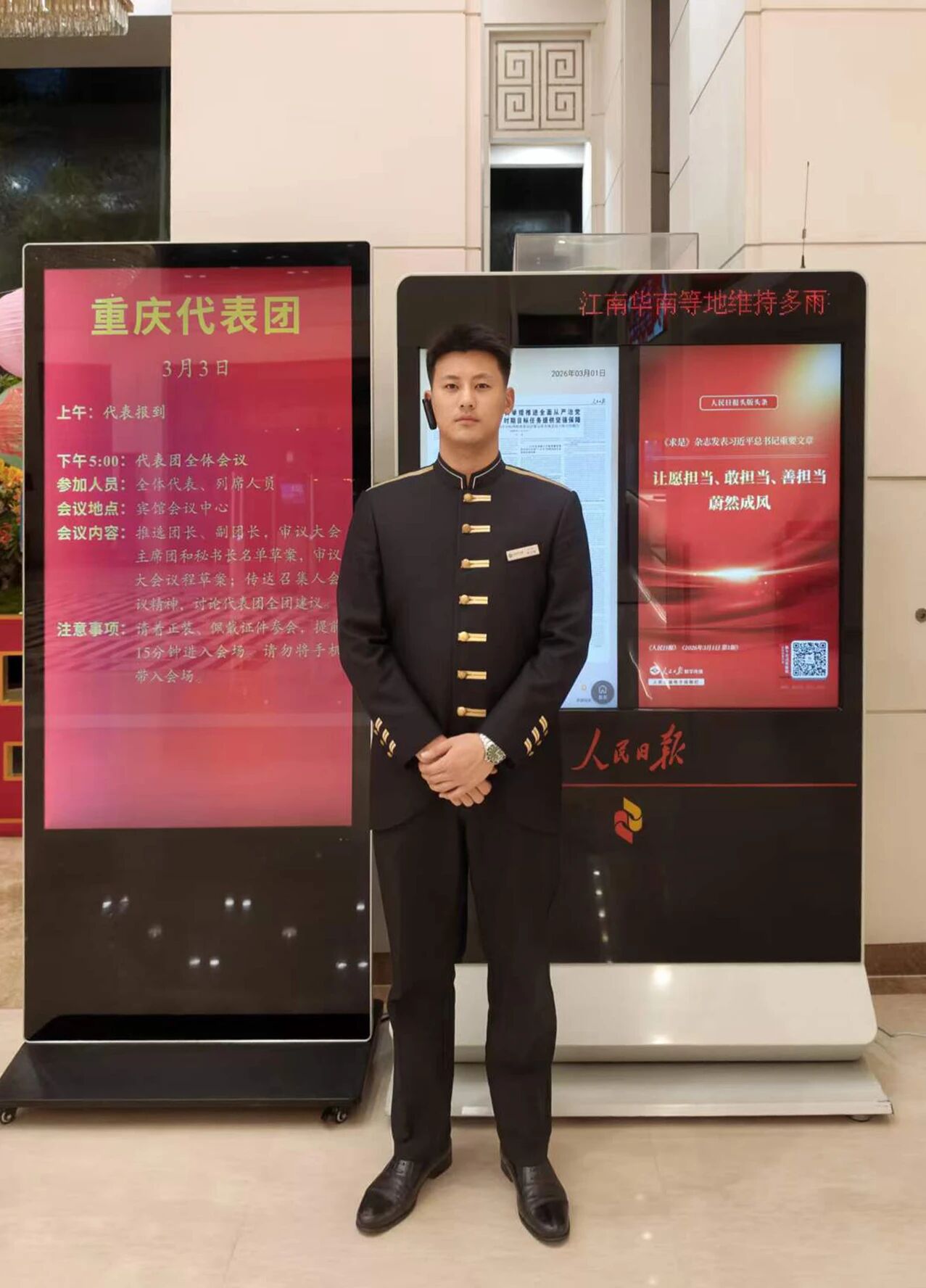 在全国两会这个举世瞩目的平台上,三名学子并非简单的“参与者”,而是国家形象的“青春代言人”。他们将日常所学、学校所育,转化为服务盛会的具体行动。无论是举手投足间的礼仪规范,还是细致入微的会务保障,抑或是严谨高效的驻地服务,每一个平凡的岗位,都成为他们读懂中国政治、感受制度优势、体悟为民情怀的微观窗口。